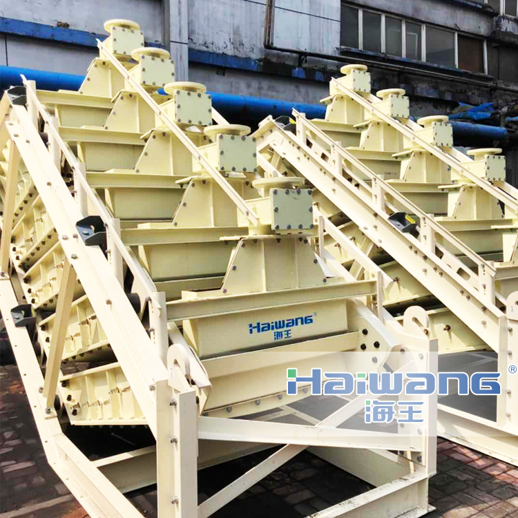 三產(chǎn)品重介質(zhì)旋流器是由一臺圓筒型旋流器、一臺圓筒圓錐型旋流器串聯(lián)而成的機組。這種形式的旋流器分選過程是從低密度到高密度。